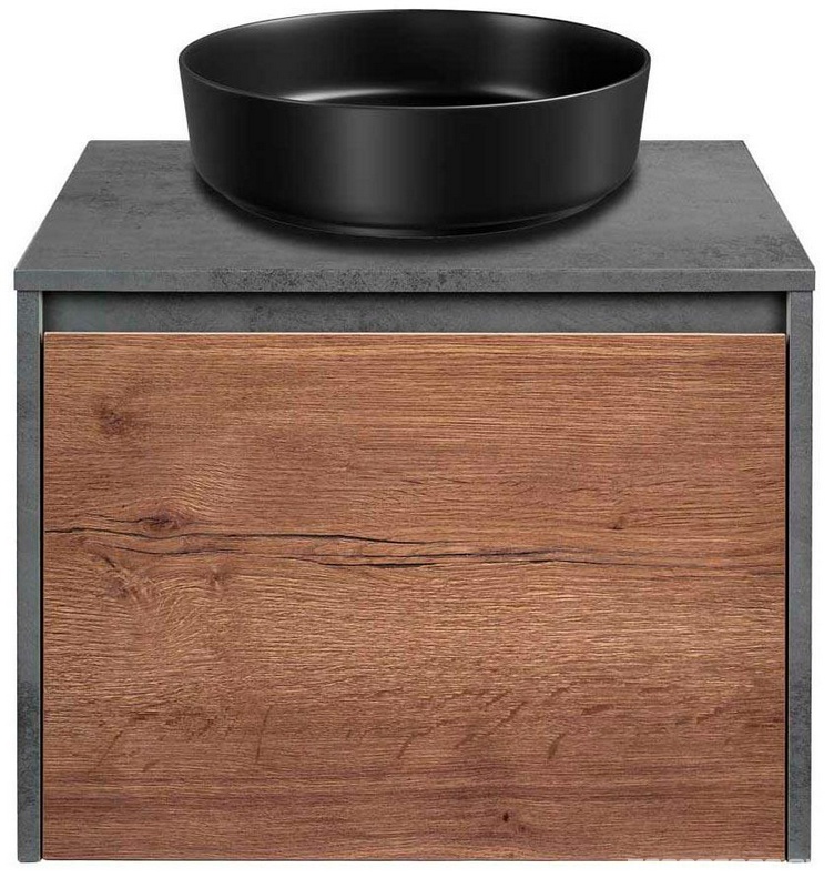 База под накладн.раковину подвесная, 1 выкатной ящик, 1 скрытый ящик, 600x500xh450мм, без раковины, (цв.T.Oak + Beton), Mesa ZZ