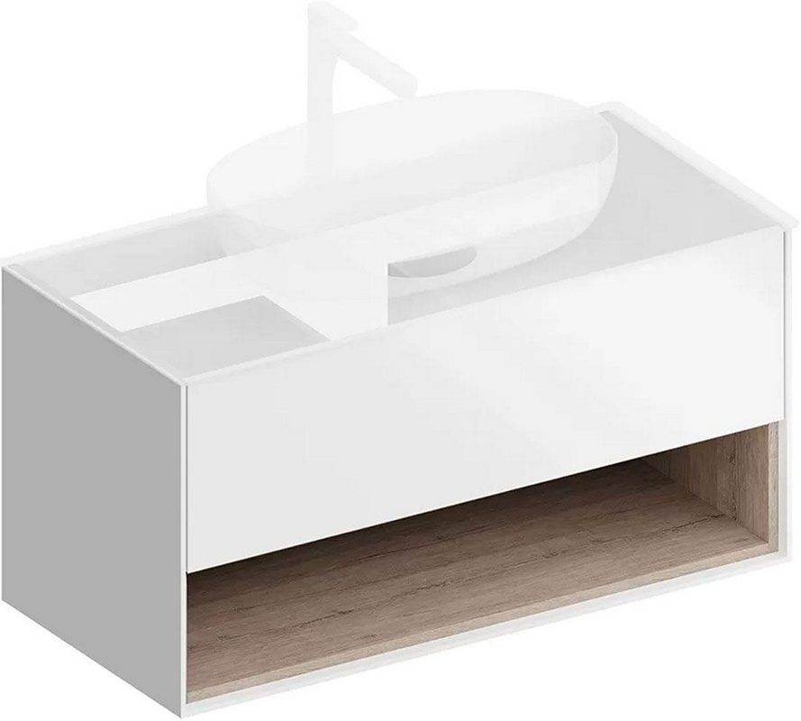 Тумба подвесная "Edifice"-100 см, 2 выдвижн. ящика, 1 расп.дверца, раковина в компл., цвет белый ZZ