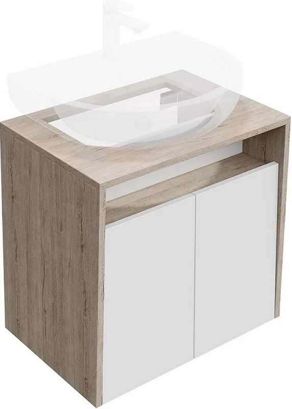 Тумба подвесная 60 см, 2 дверцы, без накладной раковины, корпус дуб/дверцы белые ZZ
