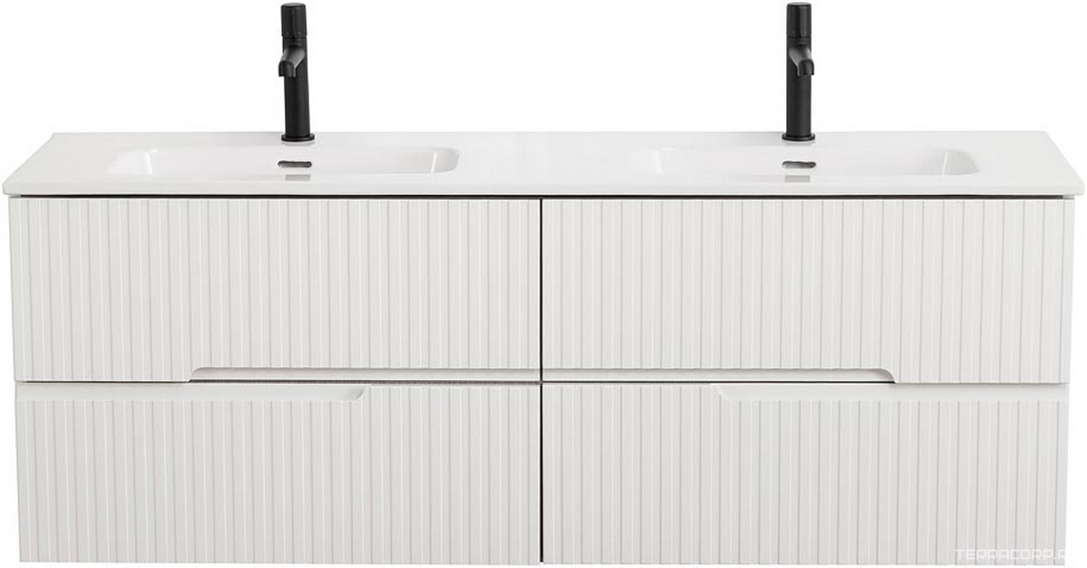 База под раковину подвесная с 4 выдвиж ящиками, 1400х450xh500мм, без раковины,с 2 чашами (цв.Bianco Lucido), Duet ZZ