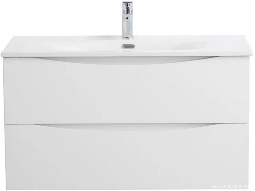 Тумба подвесная 100 см, с 2 выдвижных ящика Push-to-Open, БЕЗ столешницы и раковины, цв.белый глянец