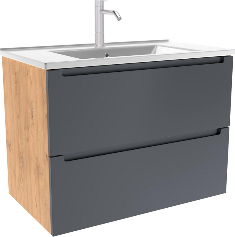 Тумба под раковину/столешницу подвесная с 2 выдвиж. ящиками, 79х43.5хh57см, (цв.графит мат./дуб), ZZ ZOV aqua Дион D80GD