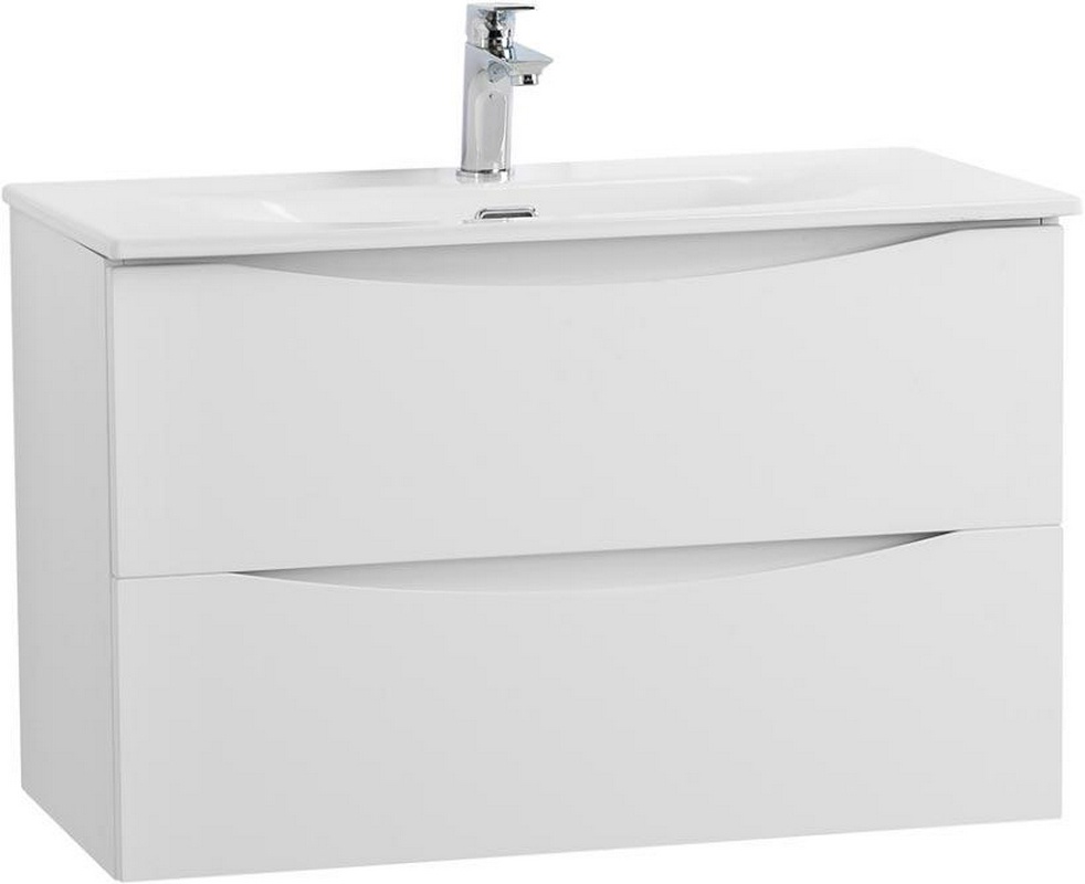 Тумба подвесная 90 см, 2 выдвижных ящика push to open, без раковины, цвет белый матовый/белый глянец