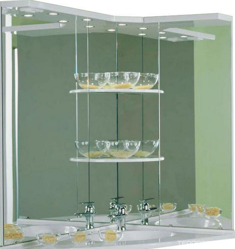 Угловое зеркало Корнер 1000*1167*297 левое, цвет белый, в комплекте светильники, полки и крепеж ZZ