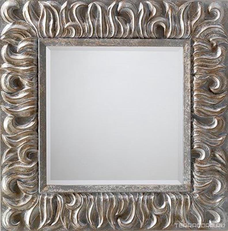 Зеркало 730х730х40мм, в раме из красного дерева с ручной резьбой, Flames