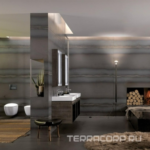 Зеркало 884х584х140мм, в раме, со светодиодной LED 12V / 29,5W подсветкой по контуру, (цв. светый дуб), крепёж в компл., Citterio ZZ