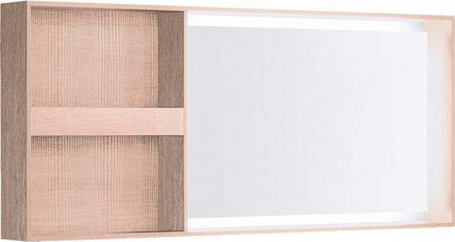 Зеркало 1334х584х140мм, в раме, с открытым отделением для хранения слева/справа, со светодиодной LED 12V / 29,5W подсвет по контуру, (цв. свет дуб) ZZ