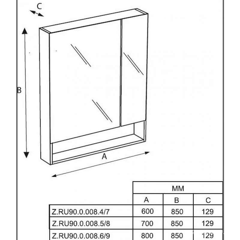 Зеркало-шкаф для мебели GAP, 70хh85 см, со светильником, цв.белый ZZ