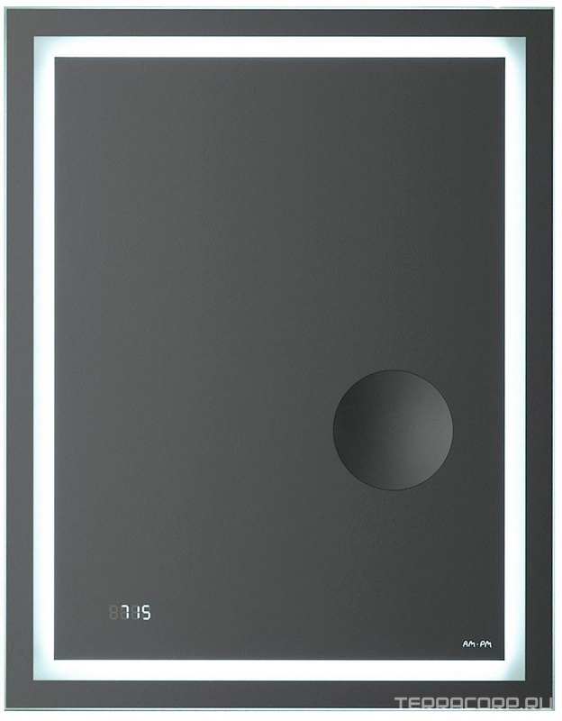 Зеркало Gem, 80 см, с контурной Led-подсветкой, часами и косметическим зеркалом