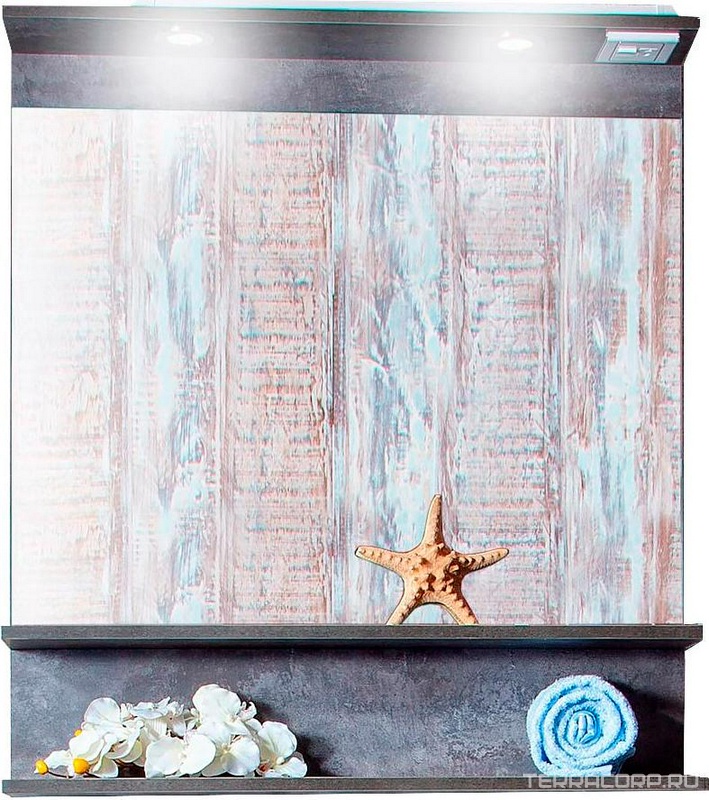 Зеркало с полкой Бриклаер Чили 80 см цемент, с подсветкой с электровыключателем, ZZ
