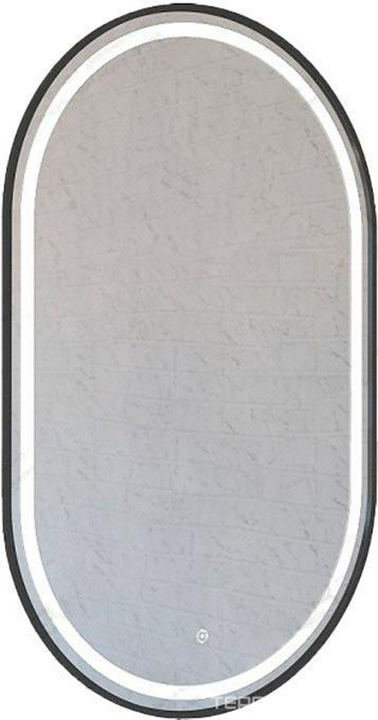 Зеркало овальное 80х50 см, на алюминиевом профиле, с LED подсветкой 6500К, с сенсорным выключателем, цв.черный