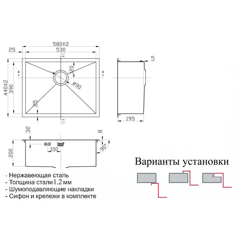 Мойка кухонная Zorg Inox X X-5844| 44x58x20