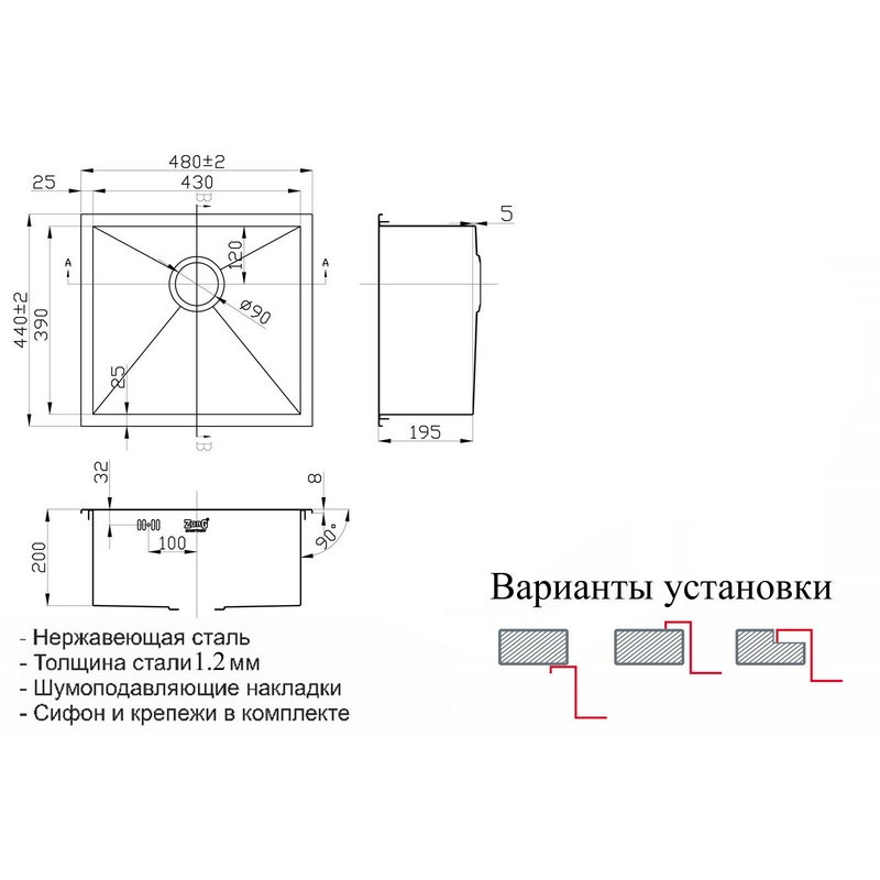 Мойка кухонная Zorg Inox X X-4844| 44x48x20