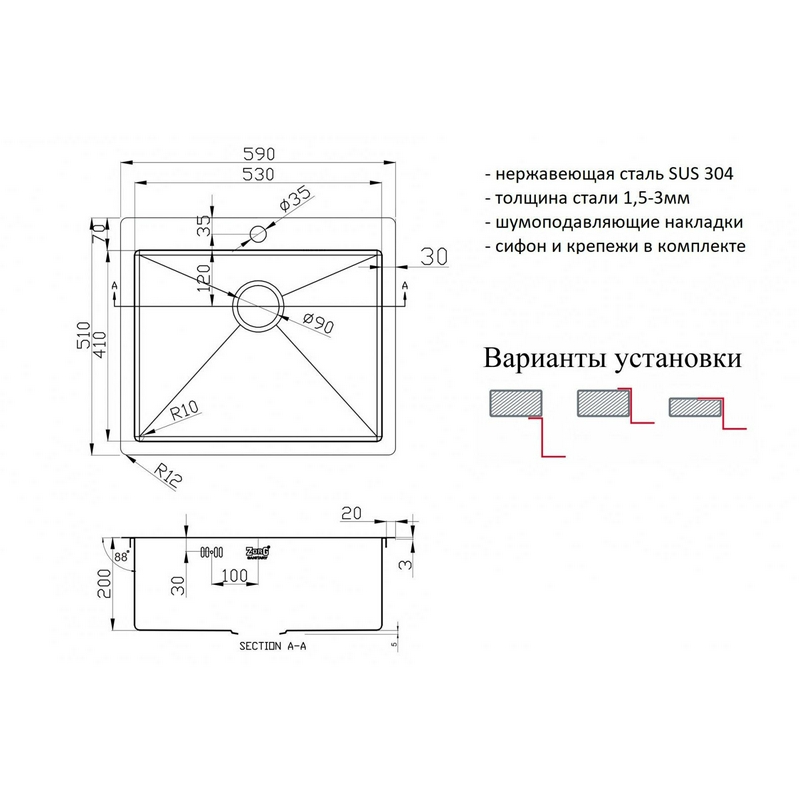 Мойка кухонная Zorg Inox R 5951| 51x59x20