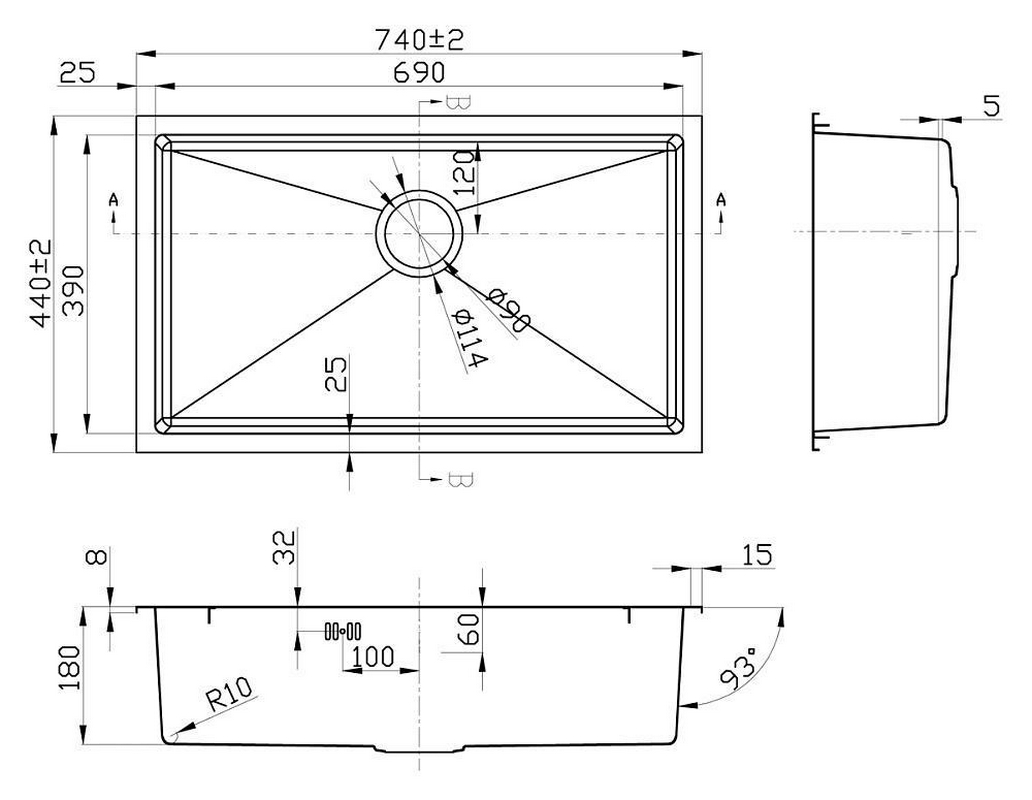Мойка кухонная Steel Hammer R Julos SH R 7444| 44x74x18