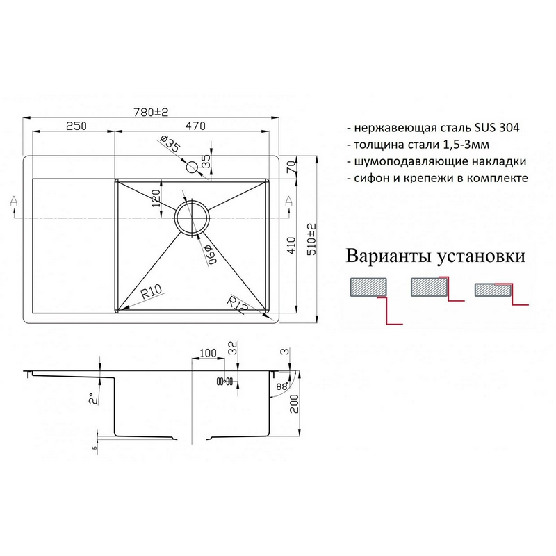 Мойка кухонная Zorg Inox R 7851 R| 51x78x20
