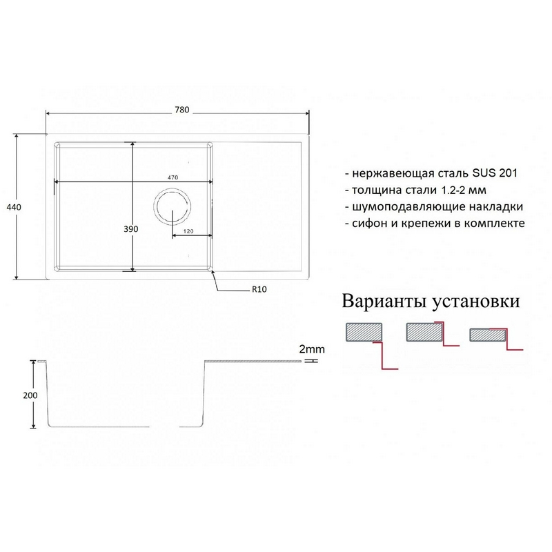 Мойка кухонная Zorg Light ZL R 780440 GRAFIT| 44x78x20