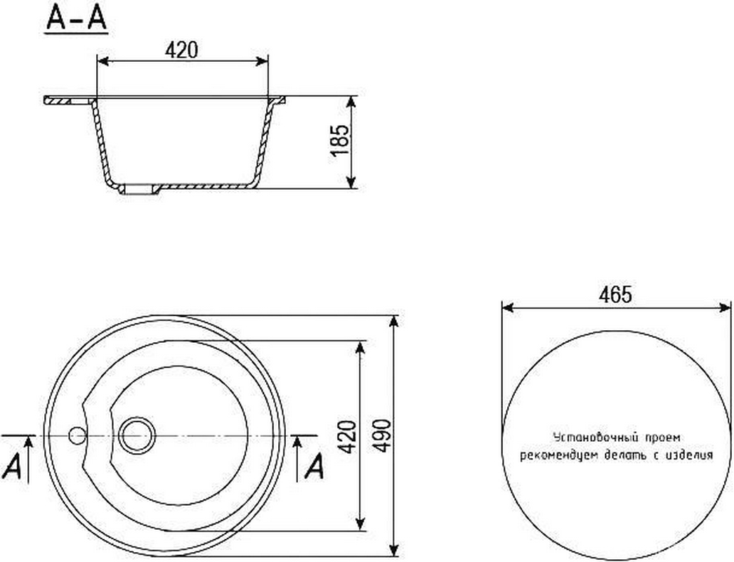 Мойка кухонная Ulgran U-100-309 темно-серая| 49x49x18