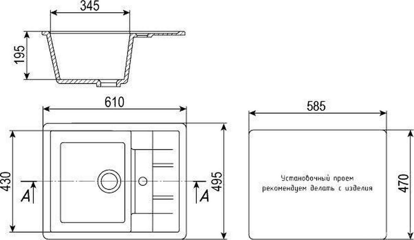 Кол-во отверстий под смеситель намеченно 0