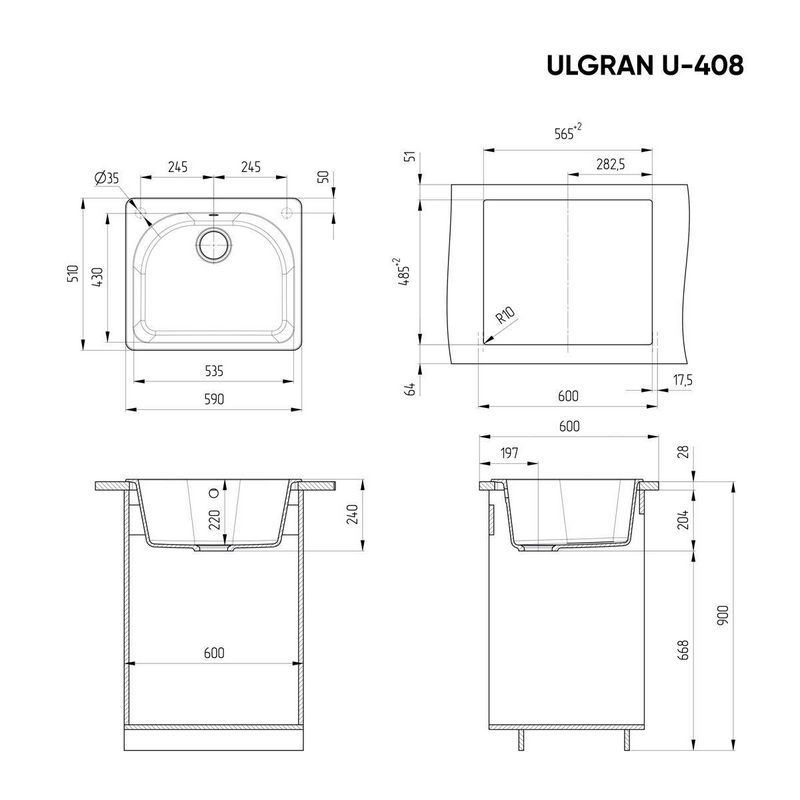Мойка кухонная Ulgran U-408-308 черная| 51x59x22