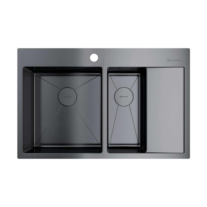 Мойка кухонная Omoikiri Akisame 78-2-GM-L вороненая сталь| 51x78x20