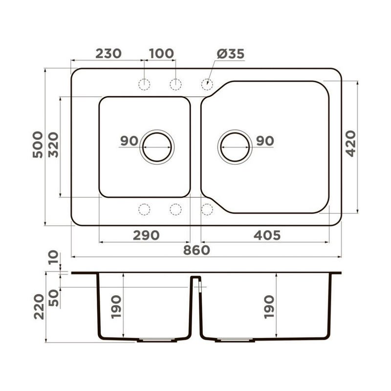 Мойка кухонная Omoikiri Maru 86-2-EV эверест| 50x86x21