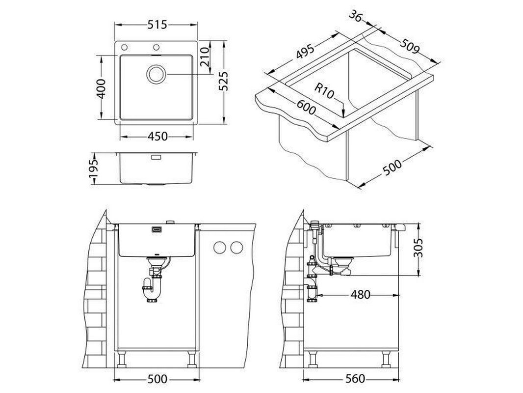 Монтаж встраиваемый сверху, интегрированный