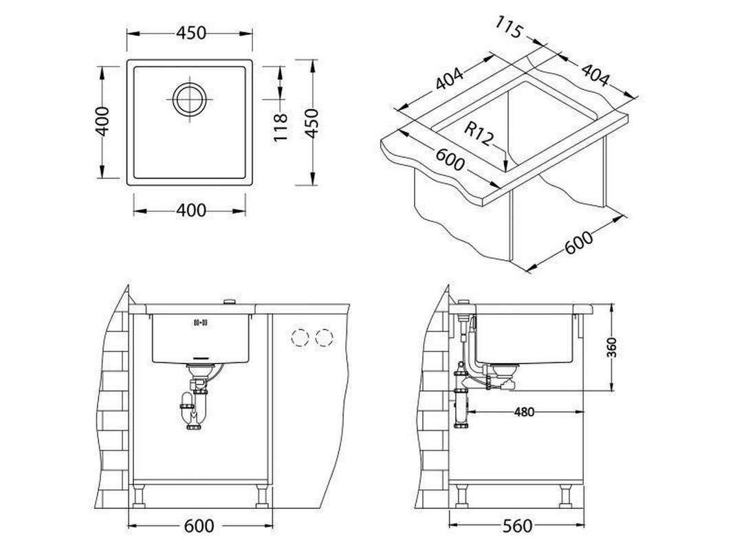 Мойка кухонная Alveus Quadrix Monarch 30 антрацит| 45x45x20