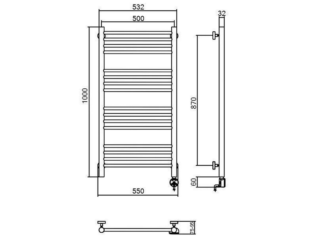 Полотенцесушитель "Богема" 1000х500мм, левый, электрич., кронштейн крепл. в компл., цв.состаренная бронза ZZ