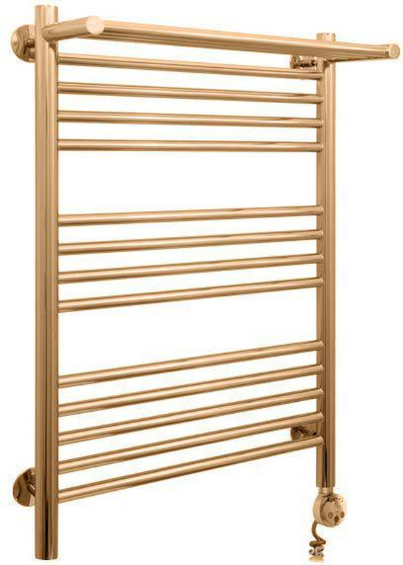 Полотенцесушитель "Богема" 800x500 мм + 1прямая пол., электрический, пульт управ. справа - цвет золото, в комплекте 4 телескоп.кроншт. цвет бронза ZZ