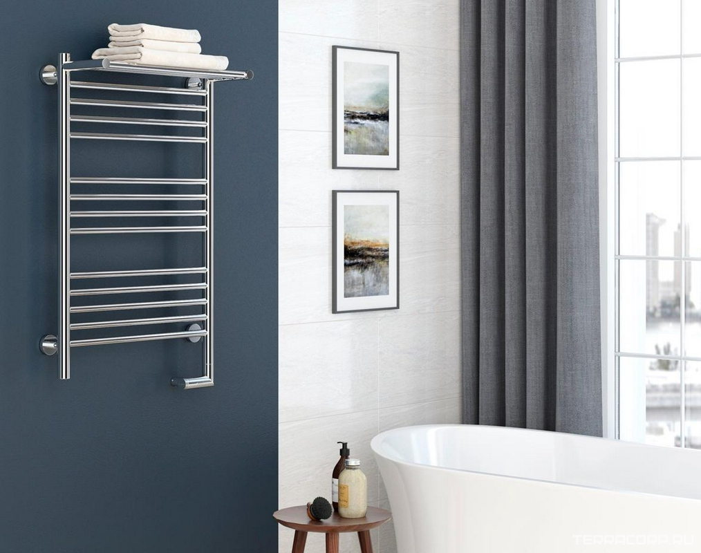 Полотенцесушитель "Богема+" 1000*500 мм + 1 прямая полка., электрический, пульт управ. справа, в комплекте 4 телескоп.кроншт. цв.хром ZZ