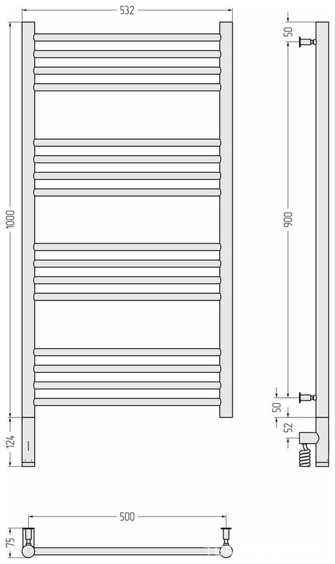 Полотенцесушитель электрический "Богема 3.0" прямая 1000х500 / блок управл. слева, скрытое подключение в компл., МЭМ, цв. хром, ZZ