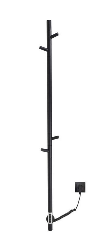 Полотенцесушитель вертикальный 15х140, h1370х127мм, электрический, 40W, таймер, без модуля скрыт. подключения, (цв.черный матовый), Vincea ZZ