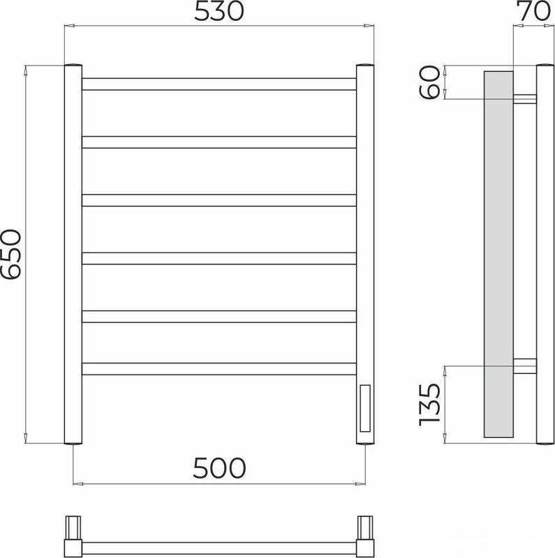 Полотенцесушитель Ватикан П6 500х650 электро (sensor quick touch), блок управл.справа, цв.хром,ZZ