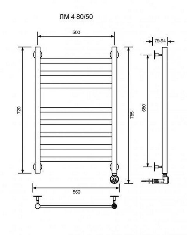 Полотенцесушитель электрический "ЛМ-4" 800*500 мм,скрытый монтаж, блок управления справа, цвет хром ZZ