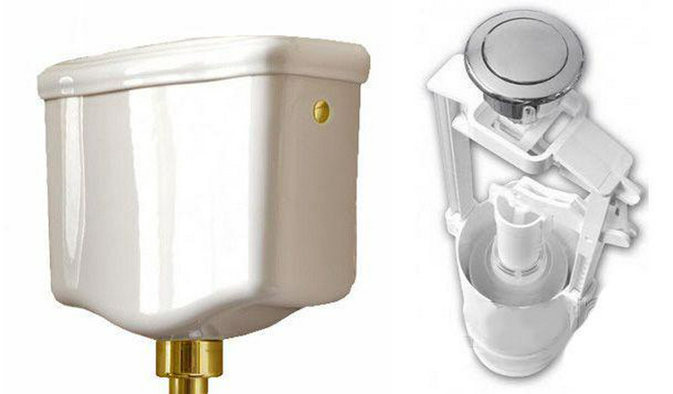 Механизм смыва для "Среднего" бачка унизаза, (кнопка цв.золото), Kerasan ZZ
