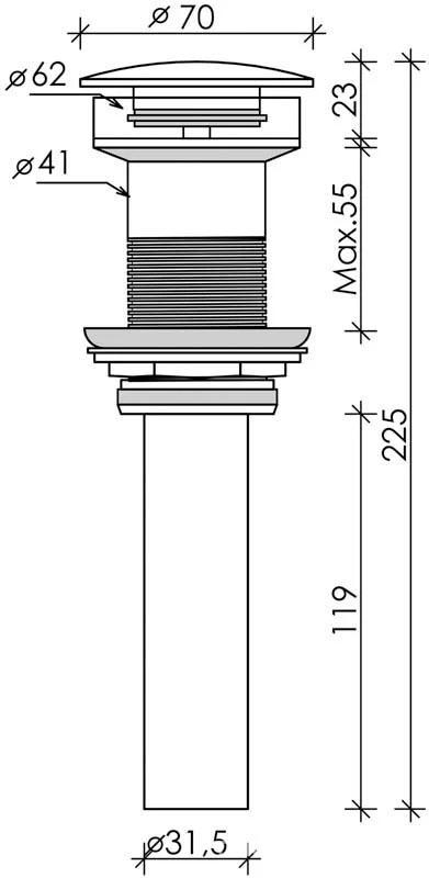 Донный клапан для раковины без перелива, цвет черный матовый ZZ