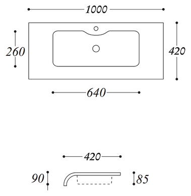 Раковина накладная на стол, прямоугольная 60х40хh12,5мм, без отв.д/смес, без перелива и пробки слива, (цв.Gloss Black), Shui Comfort ZZ