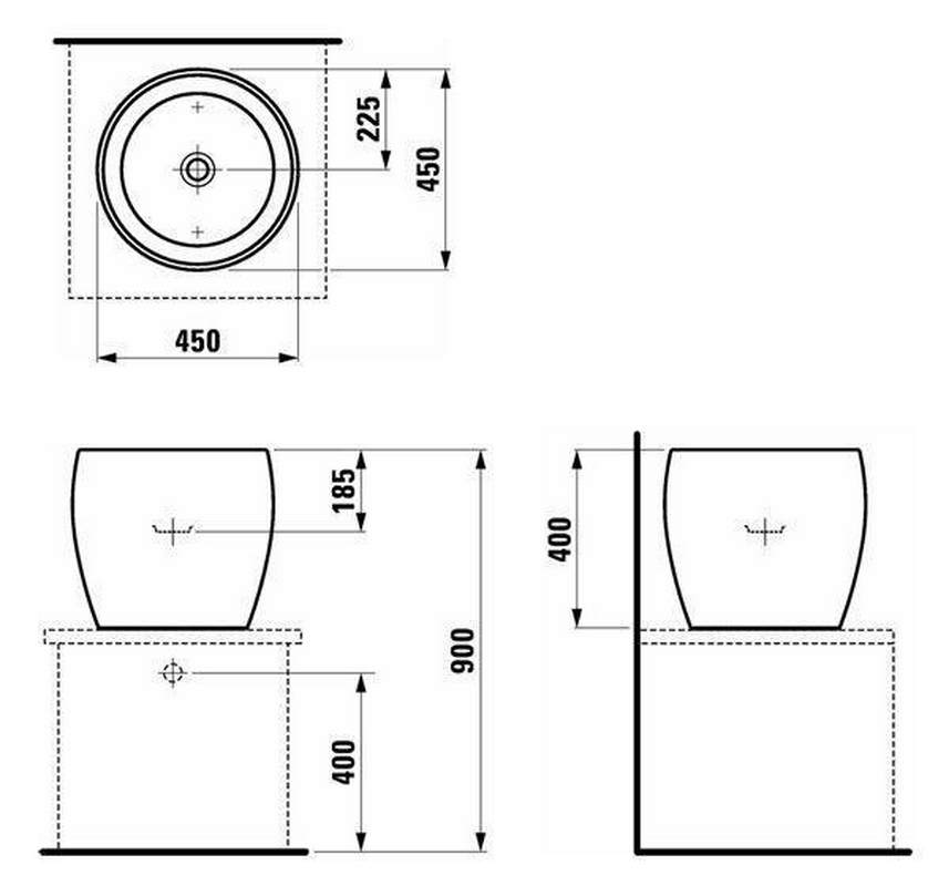 Раковина-чаша накладная на столешницу, круглая d450xh400мм, без отв.для смесит., со скрытой системой перелива Clou, ILBAGNOALESSI One ZZ