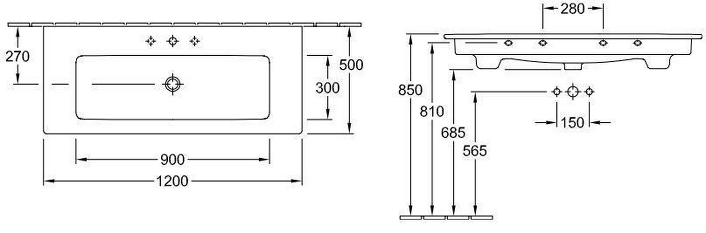 Раковина 1200х500мм, 1 отв. д/смес., с переливом, для установки с мебелью, (цв. 01 white), Venticello ZZ