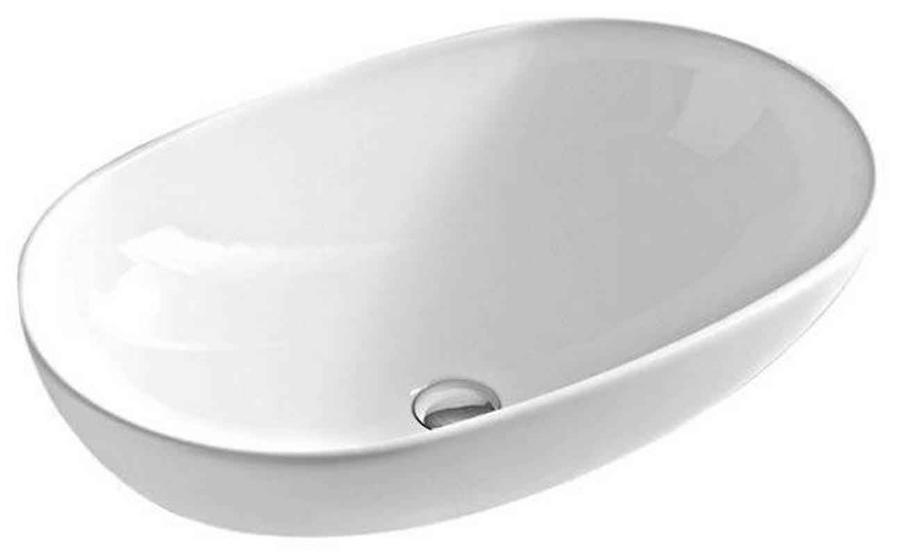 Раковина накладная на столешницу, овальная 650х415хh125мм, без отв.д/смесит., без перелива, (цв. белый), Ghost