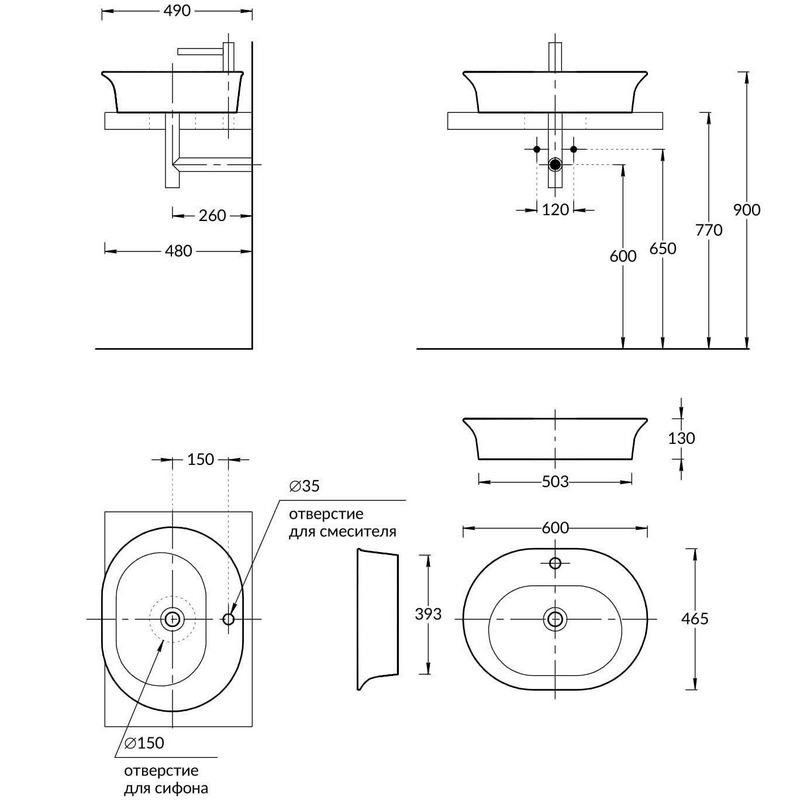 Раковина-чаша CANALETTO 60x40 см см, БЕЗ сифона, белая XX