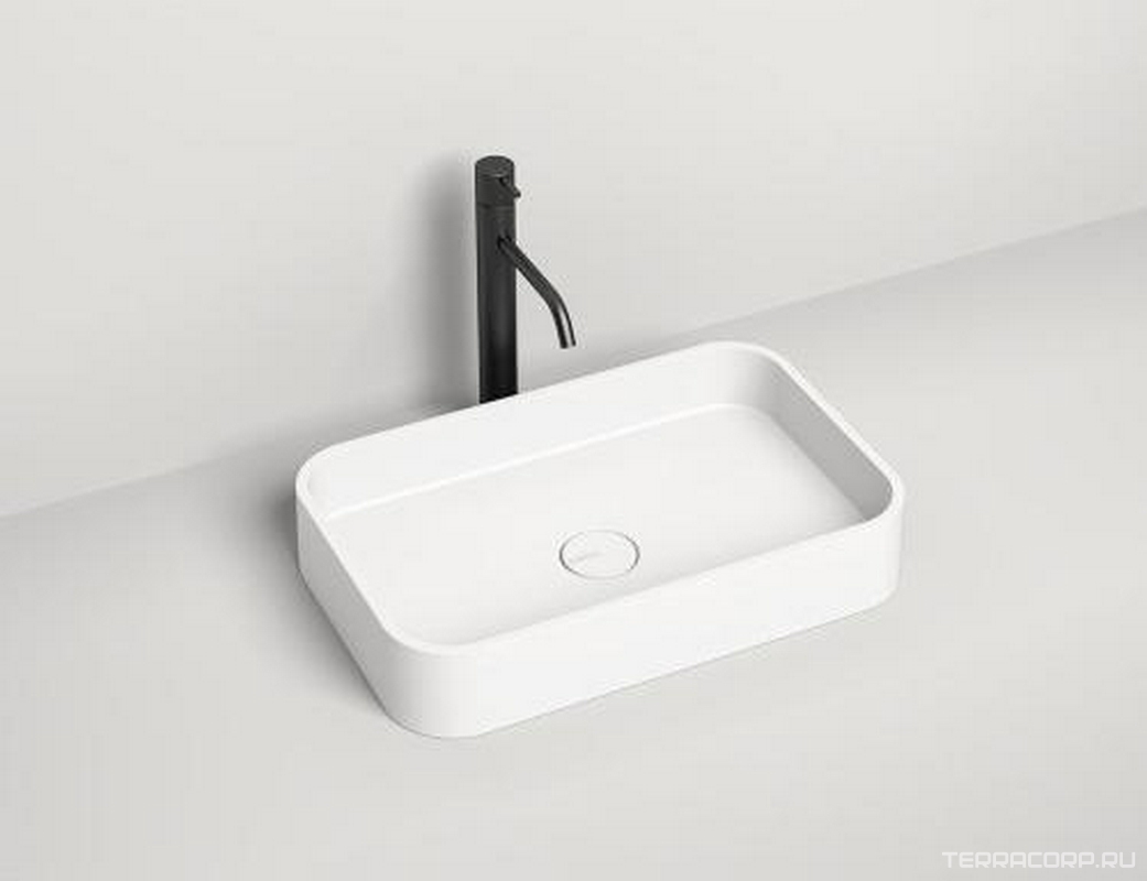 Раковина накладная на стол,прямоуг. 545х350хh100мм, без отв.д/смес, без перелива, (литой природн камень Sapirit, поверхн. матовая цв.белый)CallistaXX