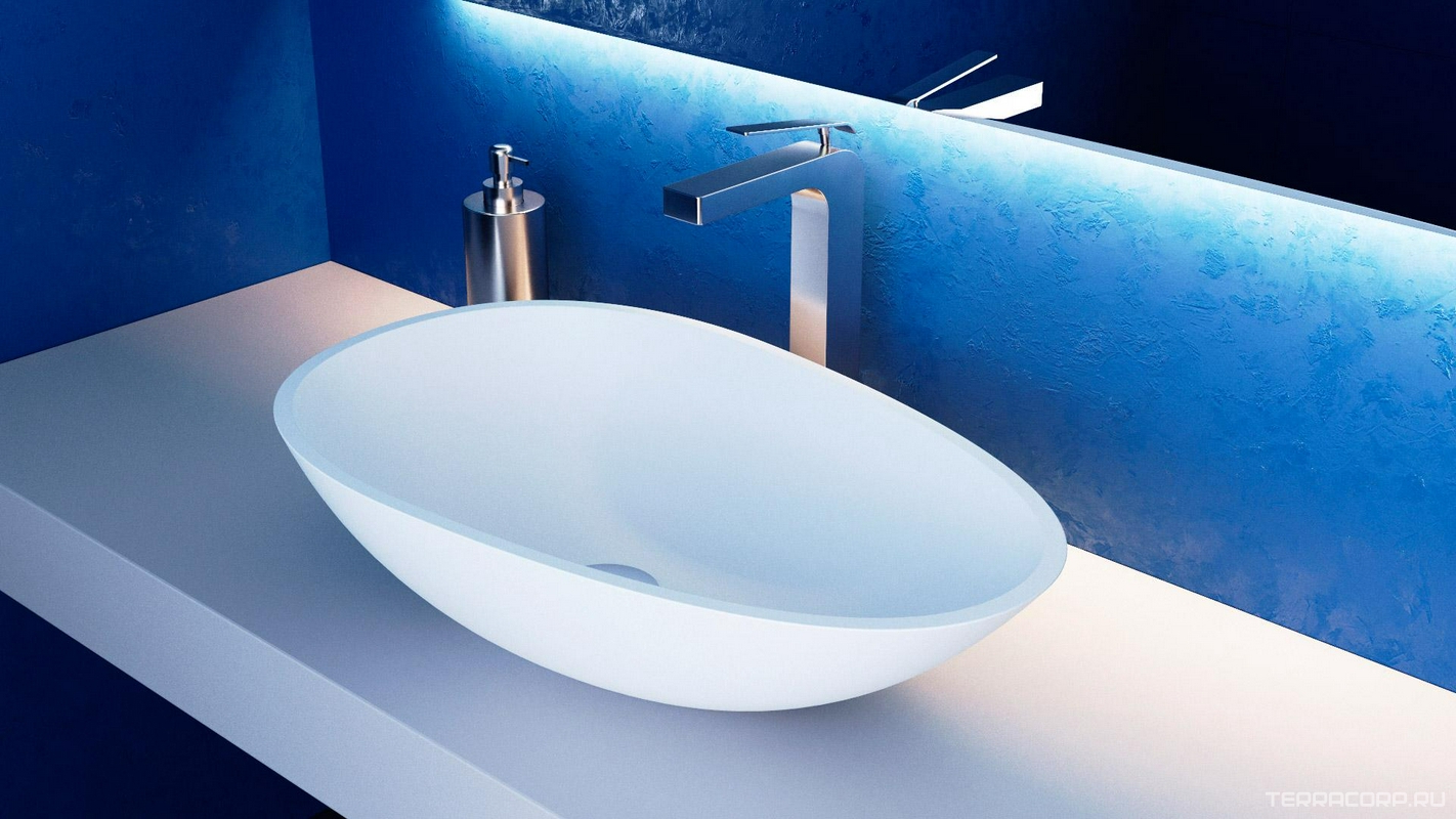 Раковина накладн.на стол,овал.565х350хh150мм,без отв.д/смес,без перелива,(литой камень Sapirit,поверхн.мат.цв.RAL 7002 оливково-серый), Callista XX