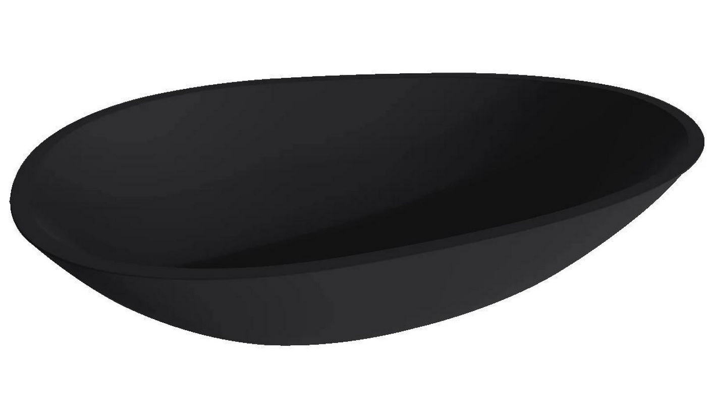 Раковина накладн. на столешн,овал.580х345хh140мм,без отв.д/смес,без перелива,литой камень S-Stone, матов цв.RAL9004 сигнальн.черный полностью,Paola ZZ