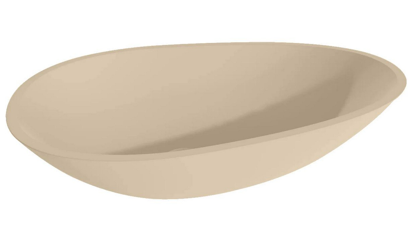 Раковина накладн. на столешн,овал.580х345хh140мм,без отв.д/смес,без перелива,литой камень S-Stone, матов цв.белый, Paola