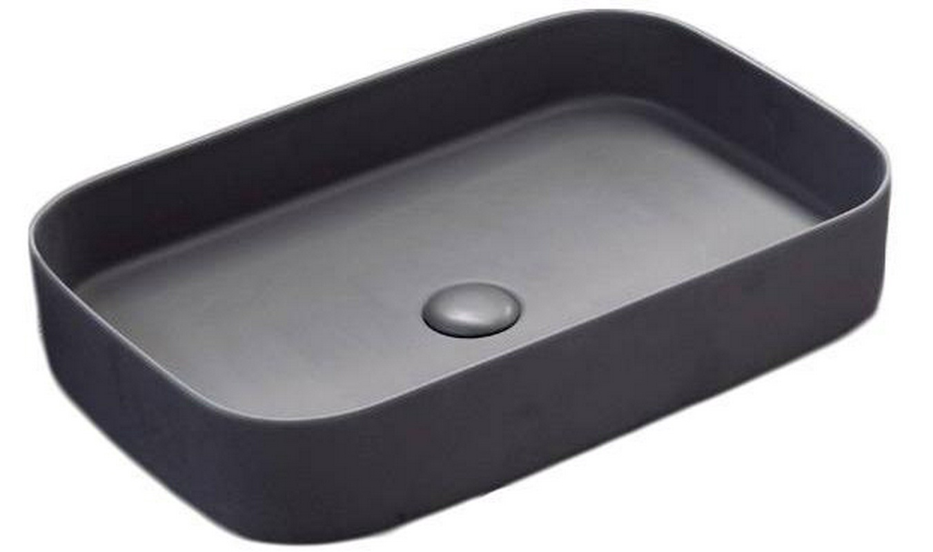 Раковина накладная на стол, прямоугольная 60х40хh12,5мм, без отв.д/смес, без перелива и пробки слива, (цв.Basalto), Shui Comfort ZZ