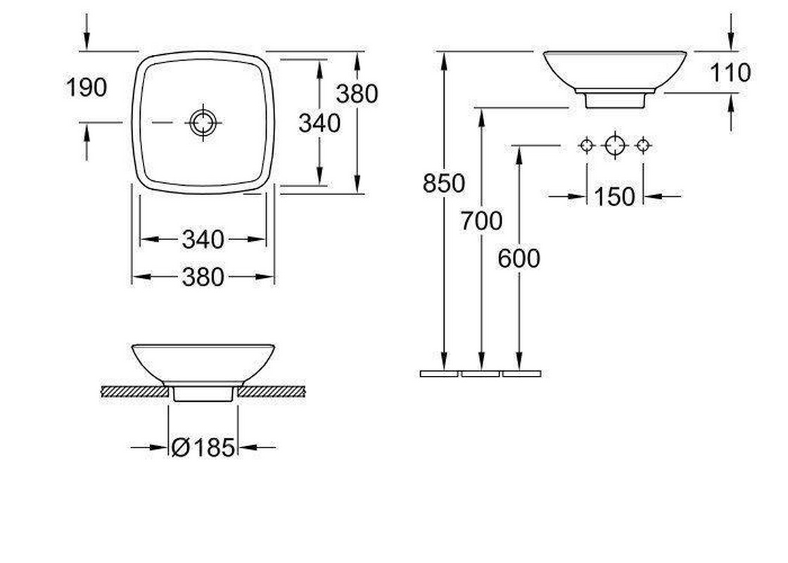 Раковина 380х380мм, для устан. на столешницу, с переливом, керам.пробка,металл.стержень д/пробки,креп,шаблон в комп,(цв.R1 White cer), Loop & FriendsZ