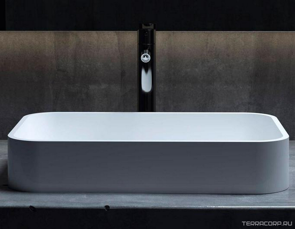 Раковина накладная на стол., 545х345хh100мм, без отв.д/смес, без перелива, (литой камень Solix, поверхн.глянец цв.белый), Callista 104 XX