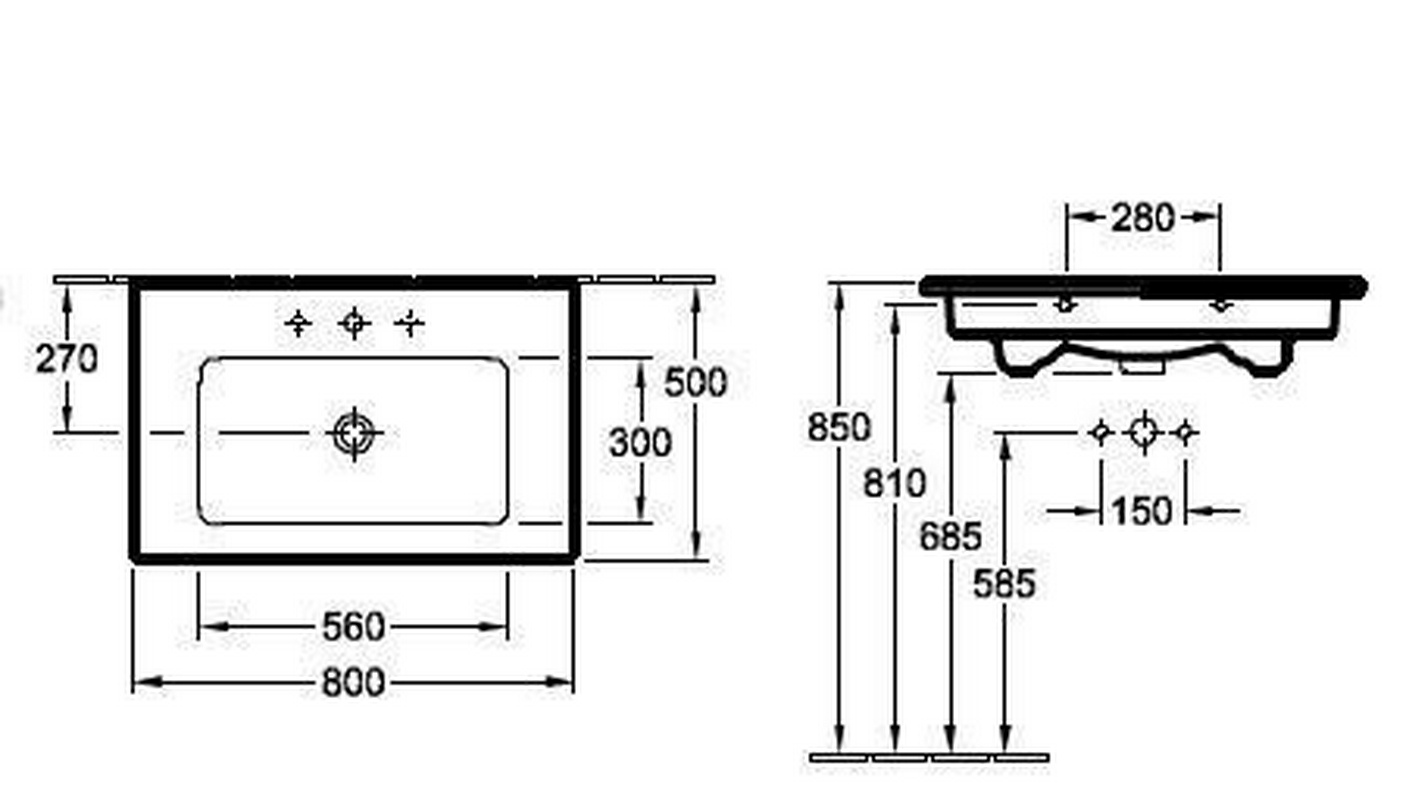 Раковина 800х500мм, 1 отв. д/смес., с переливом, для установки с мебелью (цв. R1 white cer+), Venticello ZZ